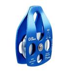シールドボールベアリング付きで直径の大きな滑車を使用した運用効率95%の高効率プーリー。 レスキューや重い荷物の引き上げなどのハードな用途での使用のために設計された丈夫なプーリーで、8knの運用荷重を持っています。 アタッチメントポイントには支点への荷重分散のため、カラビナを3つまで取り付けることができます。