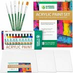 アクリル絵具セット アクリル絵具 12 本、アクリル絵具用ペイントブラシ 6 本、キャンバスパネル 3 枚 - プレ